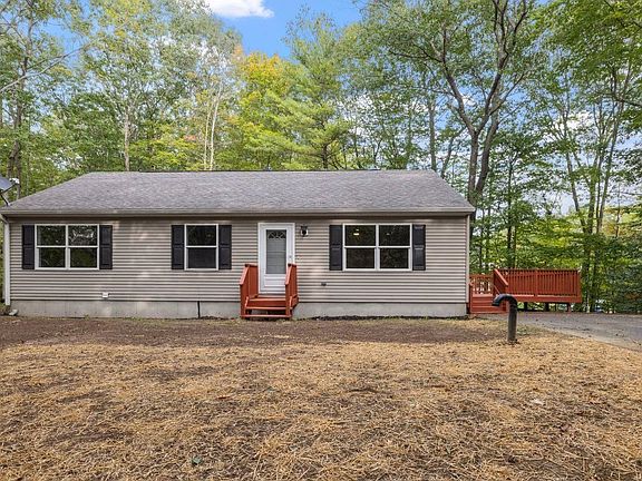 Completely renovated 2000 ranch home with open concept kitchen and diningroom, large livingroom, primary bedroom with bath and 2 others on first floor; basement offers large family room and another den/library, utility room and storage area. Home sits back from road with entrance from paved driveway onto 16x20 deck. Just Rt 28 for ease to get seacoast or south; this community offers rights to two lakes, tennis , golf, and pools, club house. Great area for year round living or rental for extra income. 30 min to Gunstock for winter skiing; 20 min to Lake Winnipesaukee and lake amenities. Or stay local and use the beaches on Locke Lake/Halfmoon Lake or resident Suncook Lake. Great efficient home and ready to move in...