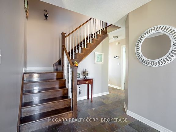 Come home to 38 Nicholas and enjoy all that it has to offer. The spacious double driveway leads to the double garage with an inside entrance. The front walkway and patio invites you to enter the very large foyer with slate floors that flow through to the powder room and in home office or mud room. The 29ft long living room has a vaulted ceiling, gas fireplace, and lots of natural light. You could do a combo living and dining. The family size kitchen features a sit at island and many cabinets with good counter space. The formal dining room could also be a family room. The door from the kitchen leads to a very spacious deck and fully fenced pool size lot with a vinyl shed with concrete pad. The hot tub and cover is a bonus. The upper level features 3 bedrooms and 2 bathrooms. A 4pc services the two carpeted bedrooms. The primary suite with bamboo floors has a walk-in closet and large 4pc ensuite with large jetted tub and a large separate shower. The lower level has a large family room with a thermostat controlled gas fireplace. If you need more bedrooms there is space for another one plus a R.I. bathroom. Extras include alarm system, water back flow in the wine cellar. R.I. for 4th bathroom, hard wired for smoke and carbon monoxide detectors, sump pump and reverse osmosis water filter. Seller is flexible on closing and can accommodate a quick closing.