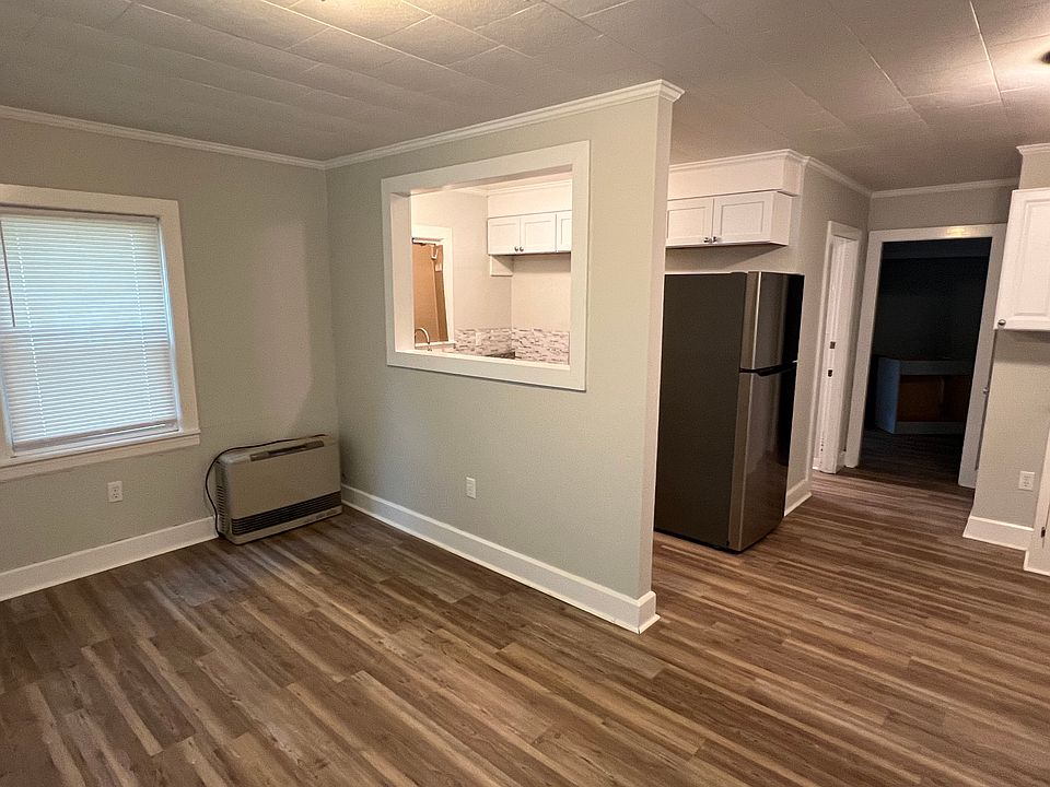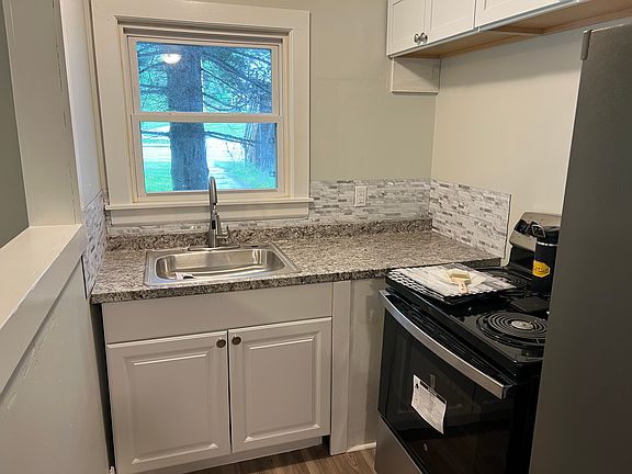 Freshly renovated unit- freshly painted, brand new vinyl floor, new cabinets. New shower, toilet, bathroom and kitchen sinks. Dumpster included (emptied weekly). Off street parking. New stainless steel appliances. Landlord pays: water, sewer, dumpster, parking lot plowing. Tenant pays: Heat (propane), electric, internet.
