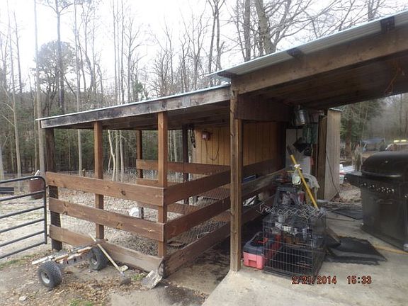 Single wide on one acre lot. Storage building. Exterior partially completed with wood siding.