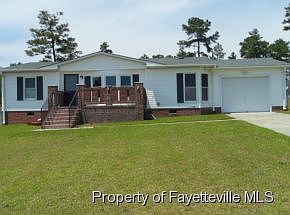 -Affordable well kept manufactured home with single car garage, brick front porch, rear deck, large fenced backyard. Laminate flooring in living room and bedrooms. In cul-de-sac near restaurants, schools and shopping. 10 minutes from Ft. Bragg. County taxes only! Sale finalized 8/16/14.