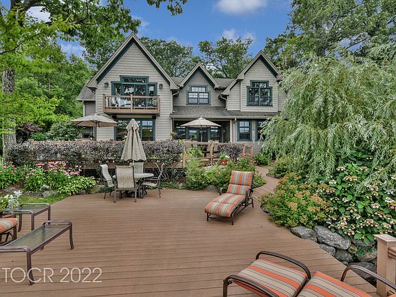 LAKEFRONT views everywhere! Enjoy the scenic view of the lake from the EIK w/ stainless appliances, custom cherry cabinetry, center island w/ barstools and walk in pantry. The view continues through the Dining Room, Sitting Area, Extended Foyer and Great Room, oh my! The great room has space for a pool table next to a beautiful, wood burning fireplace w/ gas ignitor. The main floor also has office space, coat closets, entry from the three car garage and a full bathroom with a steam shower. There are oak hardwood floors throughout. Upstairs are four bedrooms each w/ their own private FULL bathrooms. The Primary Bathroom won't disappoint with custom cherry built-ins, dual vanity with granite top, marble tile shower and flooring! The Primary Bedroom has another gorgeous view from the bedroom's private balcony. The outside has endless opportunity from the porch, top deck, lower patio, on top of the boat house, or off the dock. There's also a detached garage at the top of the driveway.