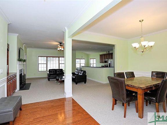 Welcome home to this gorgeous single story home in The Gates at Savannah Quarters. True foyer entrance with hardwood flooring. Open floor plan with living room, formal dining, generous open kitchen and breakfast area to complete the space. Upgraded berber carpeting throughout the home. Granite counters in kitchen and stainless steel appliances. Custom built-in book cases in living room flanking the gas fireplace. Primary bedroom has a fully upgraded bath with custom tiled shower, garden tub and dual vanity. Tiled flooring in the kitchen, bathrooms and laundry. Guest bedrooms all have spacious closet storage. Laundry room has entry to the unfinished bonus room that has hvac duct work in place if you wanted to expand your living space. The covered back porch is ready for enjoying this perfect fall weather. Community amenities include pool, playground and clubhouse. Close proximity to I-95, I-16, HAAF and Airport.