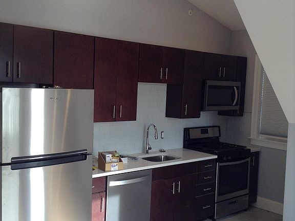 Sun drenched 1 Bedroom Loft Style apartment with in unit washer/dryer, central a/c & private deck with amazing views and much more! Open style full appliance (dishwasher, gas stove, built in microwave, garbage disposal, refrigerator) stainless steel kitchen/living room with hardwood floors throughout except tile bathroom and kitchen area. Living room with skylights, recessed lighting with door that goes out to your own private deck! High efficiency boilers installed to keep your costs down. Utilities and water not included. Close to "T" and major highways. No Pets and No Smoking allowed. FEE apartment. Must give 24 hour notice to show. For scheduled viewing call or email Janette, Bayside Realty. Available 6/1 or possibly sooner! Tenant Responsible for utilities. No Pets and No Smoking Allowed.