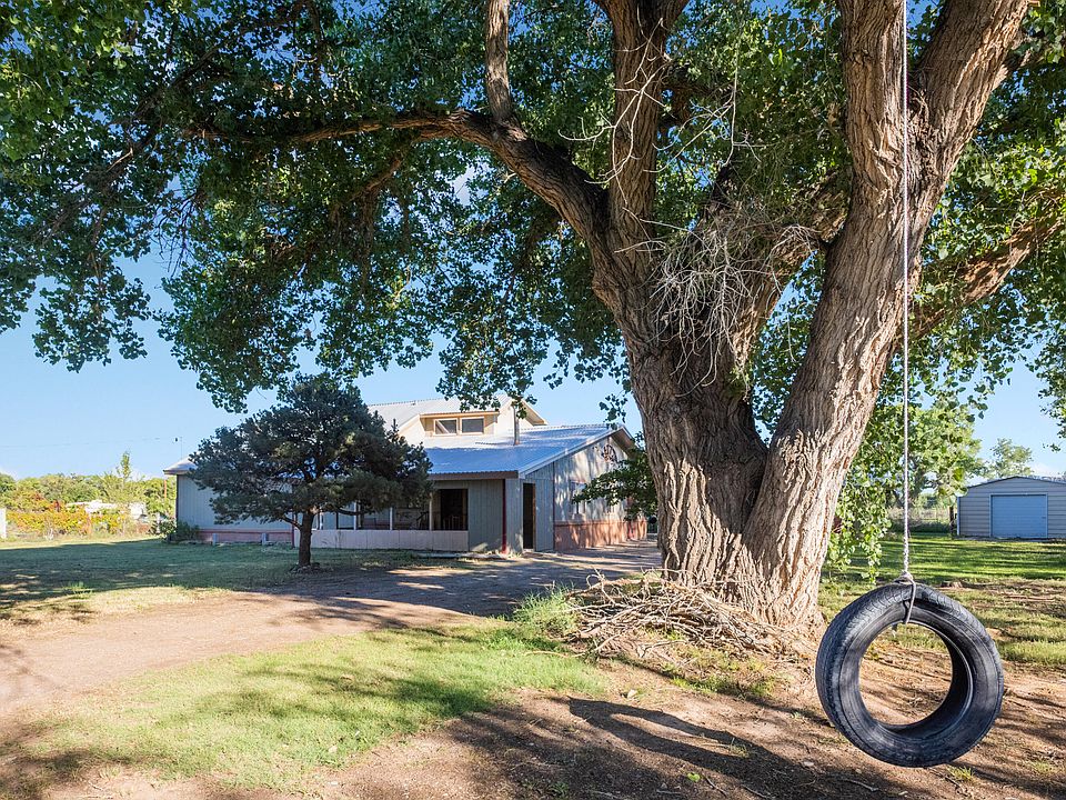 Set on 1.74 lush acres with declarable Pre-1907 Water Rights, the home has 2 very generous living areas, and Primary suites on the main floor and upstairs. Two full baths are fully functional, and the third 3/4 bath attached to the Main Floor Primary Bedroom is plumbed and prepared for a large walk in shower. New furnace was installed in 2023, craftmade cabinets with silestone counters in the kitchen, 2 detached 1 car garages - one with a large workshop plumbed for another bath, rototiller and riding mover convey. Bring your contractor to quote additional improvements, further repairs cannot be made. Bring your horses and RV. Cash or Special bank portfolio financing available with 25-35% down. WIll not qualify for Fannie or Freddie loan as this home started here in 1973 as a mobile home.
