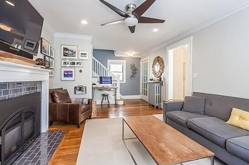 Charming 4 bedroom Colonial in convenient Arlington Heights neighborhood. Enter into the spacious living room with new windows and beautifully tiled gas fireplace. The kitchen is appointed with soapstone countertops and stainless steel appliances and opens up to a large formal dining room complete with a built in china cabinet. A heated porch rounds out the first floor and can be easily used for a bonus room, office, or playroom. Venture upstairs to find four bedrooms and a gorgeous renovated bath with beautifully tiled shower/tub combo and modern fixtures and finish. The third floor walk up attic space offers great expansion possibilities. All this plus beautiful outdoor space and two car garage. Just steps from the heights shops, public transportation, bike path, reservoir and the Pierce School!