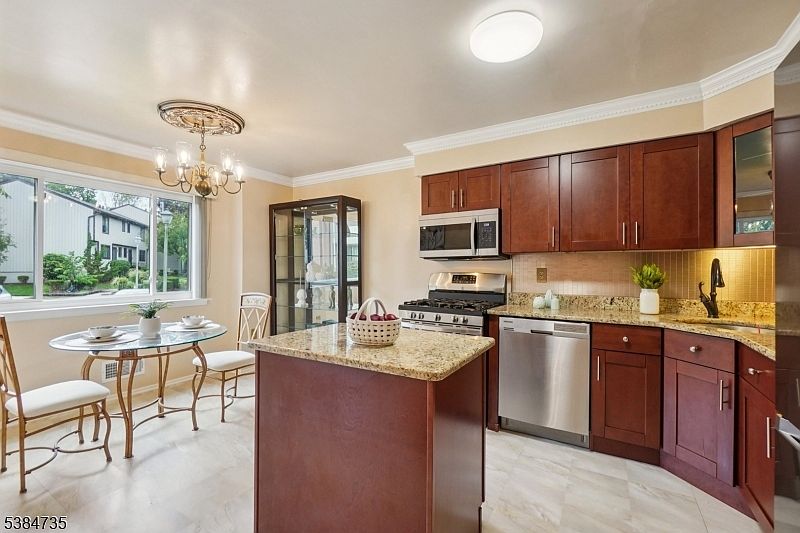 Renovated 3BR 2.5BTH Townhouse at the Hearthwood in Florham Park! Spacious Renovated Eat-in Kitchen w/ granite, Breakfast Room, Samsung SS appliances, Large Pantry, cherry color custom cabinets, Backsplash, Center Island. Hardwood floors, tons of Recessed Lights, newer light fixtures, replaced vinyl windows & moldings throughout. Large BRs incl. Primary Suite w/ 2 closets & full bath. 3rd BR opened as a loft space, can be rec/office/den. Beautifully Finished basement complete w/ family /recreation room, extra space for gym, PLUS Spacious Laundry Room with Newer Washer and Dryer, Wash Sink, and SS Storage shelf. Brand New Roof, Gutters, & composite Deck w/ few steps to yard. Brand New Toilets. Pet-friendly community w/ pool, tennis court, clubhouse, playground. 1 assigned parking + plenty of guest and addt'l parking marked "G." Close to Trader Joe's, CVS, shops, restaurants, Morristown Train, highways, gyms & golf. Move-in ready!