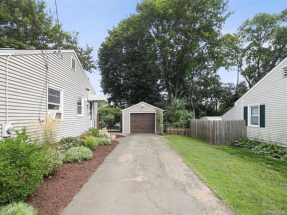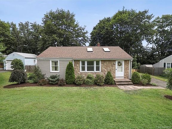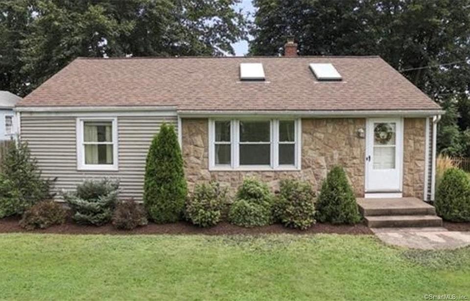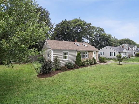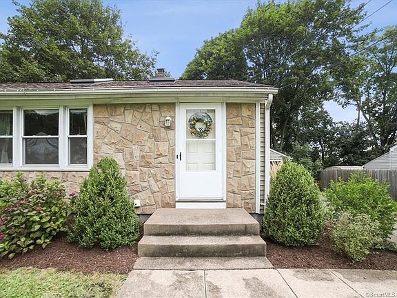 Welcome home to this move in ready 3 bedroom, 1 bath beautifully landscaped Ranch home in desirable neighborhood. This house is a gem with hardwood floors throughout, updated kitchen, baths and lower level. Newer mechanicals and roof. Living room boasts a wood finished vaulted ceiling with wood beams and sky lights adding atmosphere and lots of natural light. A beautiful open kitchen with stainless steel appliances, opening up to dining area. Walk out private back yard where you can enjoy outdoor dining under a pergola covered with grape vines. A grilling area and a fire pit are a bonus! It does not stop there - head downstairs to a cozy, heated, partially finished basement with bath adding an additional 500 sq feet of living space. Host parties or game nights with the full bar featuring sink and custom bar top made from Elm wood. One car garage with rear workshop driveway that fits at least 3 cars. Great curb appeal as this is the only stone fronted house on the street. Wallingford electric to top it all off. There is nothing more to say but when can I move in?. Showings start Monday the 6th.