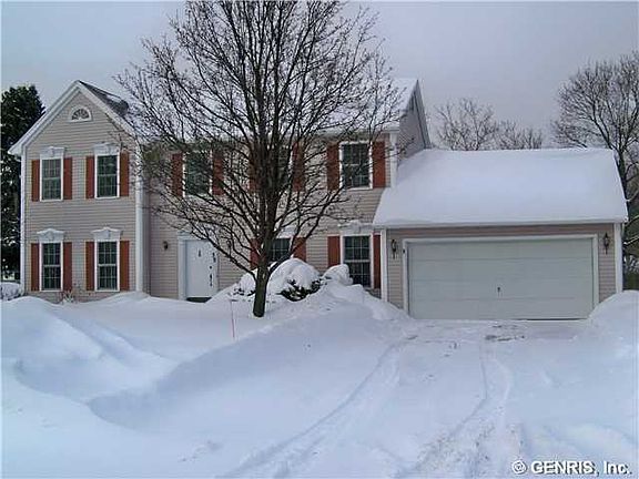 Newer Schantz Built 4BR/2BA Center Entrance Colonial. Eat-in Kitchen w/Walk-In Pantry & Formal Dining Room, Family Room w/Gas Fireplace, 1st Floor Office, 2nd Floor Laundry,4 Bedrooms Including Master Suite w/Full Bath & Walk-In Closet. 2 Car Garage. MANY UPDATES: New Tear-Off Architectural Roof 7/13, New Rheem Hi-Eff. Furnace & AC, Hot Water Heater, Plus 6" Added Insulation ALL in 09/12. Located On Low Traffic Circle, Near Shopping, Expressway, Bus Route, West Irondequoit Schools. Appliances Included!