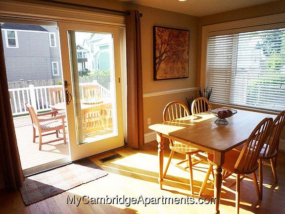 Avl SEPTEMBER 1. Near 93! Near NEW GREEN LINE SUBWAY stop! Pets OK/negotiable. Sunny spacious TOTALLY-REDONE (2006-7) deleaded 3br 2ba TOWNHOUSE on 3 LEVELS with ENORMOUS PRIVATE DECK, large YARD, 3-car PARKING, 2-zoned CENTRAL A/C, In-Unit LAUNDRY. On PARTRIDGE AVENUE near MEDFORD STREET, with easy access to Rte. 93, Davis Square, MIT, or MGH. On a quiet street in a tree-lined neighborhood. About 1500sf. LARGE OPEN LIVING/DINING with sliding glass doors to HUGE DECK and FENCED BACK YARD. Stainless steel KITCHEN with maple cabinetry and gas cooking, dishwasher and disposal, built-in microwave, refrigerator. Refinished HARDWOOD floors, recessed lighting. Large bedrooms with CATHEDRAL CEILINGS, double closets, ceiling fans. Separate LOWER LEVEL SUITE with 3rd bedroom/bath or CHILDREN'S PLAYROOM. Free PRIVATE-USE laundry (no coins). Fully INSULATED with double-paned windows, insulated walls and roof. Cable/internet jacks throughout the house. STORAGE provided. Rent includes yard maintenance. Tenant pays gas, electricity, and water. Additional parking available. Near bus #80 toward MIT (every 15 min. in the AM). Near buses to the Red and Orange Lines. AVL SEPTEMBER 1. PETS OK/negotiable. Tenant pays gas (heat, hot water, cooking), electricity (lights, appliances), and water. INCLUDES OFF-STREET PARKING for up to 3 cars (add'l parking avl). UP-FRONT: first month's rent, security deposit one month's rent. No broker fee. Smoking not permitted.