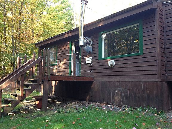This is an idyllic cabin hidden in the woods in rural Northern Vermont yet only 8 minutes from world class skiing and golf at Jay Peak Resort. It is 2 minutes away from a fabulous swimming hole in summer and all around are terrific hiking and biking trails. The quaint Vermont Village of North Troy is just 5 minutes away. So although extremely private and secluded, you are far from isolated. The property sits on nearly 9 acres of land and used to be a popular Airbnb rental but for the last few years, we have rented it long term to a fabulous tenant and any purchase of this property would require the lease to be honored through the summer of 2021. The zoning in the area is 3 acre lots and so the possibility exists to subdivide the 8.9 acres so it can be an investment property and allow for either expansion of the existing property or building another property on the site. The cabin has a wood stove but also propane heat so in winter it can be left unattended. There is ample supply of wood in the surrounding forest and so you could essentially heat for free. Wifi internet access is available as well as phone and satellite dish networks.