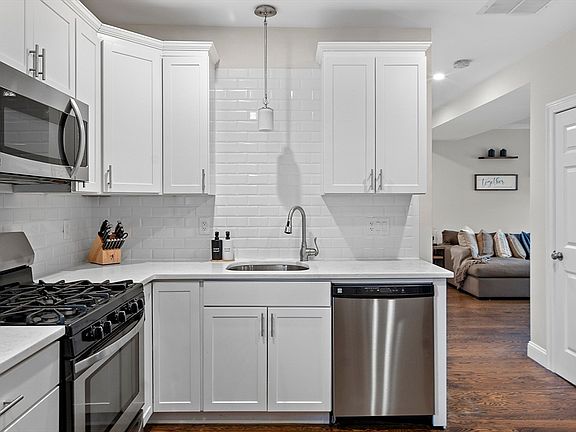 Stunning, spotless, and completely renovated! Completely gut-rehabbed in 2017, meticulously designed with no detail spared. Featuring a new roof, new back porch, new heating system, fully updated electrical wiring, modern plumbing, sleek new windows, and an Ecobee thermostat. Enjoy bright, spacious bedrooms (even room for a home office!), a bright and beautiful tiled bathroom, and an inviting eat-in kitchen with granite countertops and sparkling stainless steel appliances. Gleaming hardwood floors flow seamlessly throughout. In-unit laundry tucked into a dedicated washer/dryer room. Renovated front and back porches. Central heating and cooling. Freshly painted throughout, this home features a deeded basement storage room for added space and organization. Close to popular shops, excellent schools, major roads, and public transportation routes. The perfect blend of modern amenities and unbeatable convenience. Deeded parking space. Pets allowed.