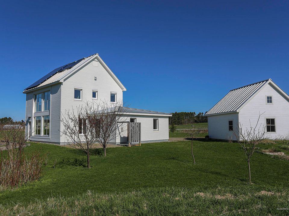Highest quality GO-Logic Passive House Solar construction, set in an open field within 2.5 miles of downtown. Recent addition of First Floor Master Bedroom with a Bath, and wrap-around screened porch. Total heating cost per year about $150.00. Two more Bedrooms and full Bath upstairs, and a Family room - a grand spot for reading, office, or play. Raised garden beds and many fruit-trees & bushes, with generous sun-exposure. A rural setting within minutes to town and harbor. Pretty perfect!