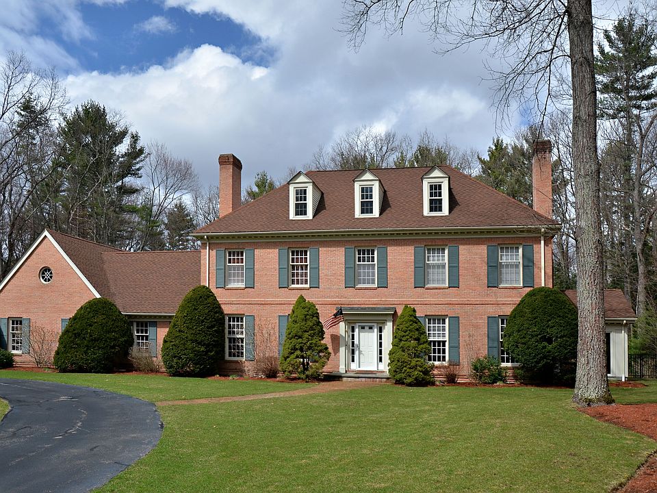 Gracious Four Sided Front Colonial w/circular driveway, built preserving all the features of the 18th century with an interior combining 21st century convenience. Characterized by formal symmetry both inside and out, the home is styled after the estate of the President of William & Mary College in Colonial Williamsburg. Detailing and finishing by Morin Builders that will appeal to the most discriminating purchaser, set in Meetinghouse Commons, Bedford's most sought after location, and only minutes to the nearest hwy for commuters. Recently updated custom dream kitchen features Wood Mode cherry cabinetry, granite, Thermador professional 36" duel fuel range & double wall ovens. Two fireplaces, 1st flr office/bedroom,newly created master suite w/ custom glass shower & soaking tub, quartz counter, & separate dressing/closet area. Newly finished 3rd flr media rm/guest qtrs & bath, updated baths,20x40 heated gunite pool renovated in 2011 with spa and pool house, flat level fenced lot.Mint!