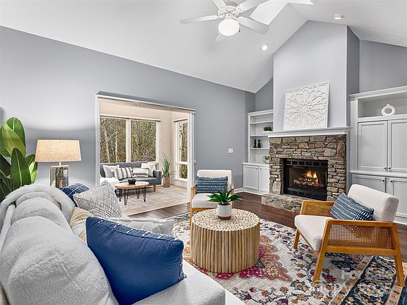 Enjoy low-maintenance living just minutes from Asheville's shopping and dining in this beautiful townhome in Viewpointe, a gated 55+ community. The HOA covers exterior maintenance, lawn care, and clubhouse access. Inside, the vaulted-ceiling living room features a gas log fireplace and opens to a sunny all-season room. The updated eat-in kitchen includes granite countertops, stainless appliances, and modern cabinetry. The main-level primary suite boasts a walk-in closet, double vanity, and walk-in shower. A second bedroom, full bath, and laundry are also on the main level. Upstairs, you'll find a second primary suite with full bath, large walk-in closet, and bonus unheated storage. A versatile bonus room is perfect for a den, office, or hobby space. Floor plan and home inspection available.
