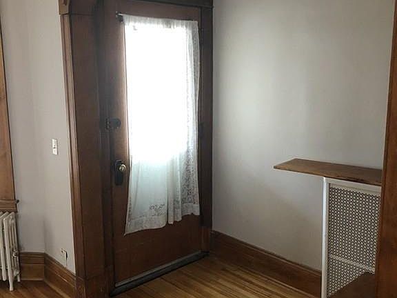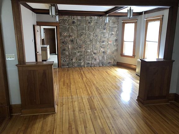 Impeccable first floor unit available! They just don't make detailed wood moldings and trim like this anymore - such beautiful craftsmanship! Gorgeous wooden beams in the main living space along with built in cupboards and stone accent wall. Beautiful wooden archway in the entryway hall. Living room, dining room and bedrooms all dawned with gorgeous hardwood floors. Full bath with tiled floor, large vanity, and cupboard space for linens. Spacious, clean kitchen with plenty of cabinets and storage. Washer and dryer conveniently located in unit. Off street parking for 1. No pets. First and last months rent required for move in. Tenant at will agreement. Rent includes water. This unit won't last!