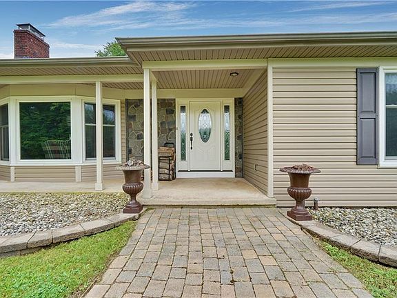 Solitude, scenic + more! These are the 1st things that come to mind! Situated on a private lot of 6.41 acres, the feats. throughout this home are surely desirable. You're lead from the extensive driveway to a stone block entry welcoming you to the front porch. Foyer gives way to a cabin style FR offering cathedral ceilings w/wood beams, wood paneling + gorgeous bay windows w/views of the park like yard. Country Kitchen has custom detail all through. Brick backsplash & center isld., oak cabinets, butcher block counters & access to a 3 season sunroom. Spacious den w/picture window brings in a wealth of sunlight. Extensive Master BR feats. modern en suite bath. Huge basement w/330 gallon oil tank. The yard is like your own vacation getaway! Stone block patio & cement in ground pool w/custom laid coping, infinite yard, 30x40 barn w/6" cement floors, seperate shed w/steel awning- WOW! All this and MORE! Come see for yourself!