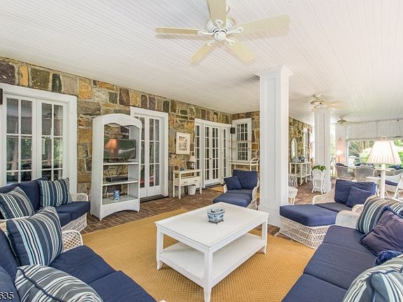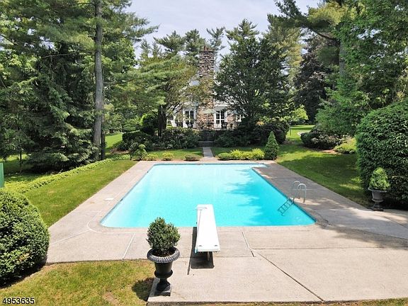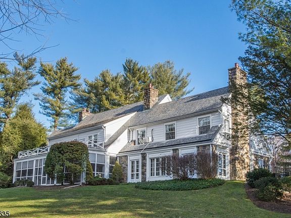 Extraordinary setting on 2.7 acres overlooking the Rockaway River. Traditional Col w/circular driveway and beautiful grounds of mature flowering plantings and trees. Lovely sideyrd w/pool,stone FP,gazebo and stone walls thread thru property. A pond is also in view from the front door. There is a bluestone patio, walkways and stunning back screened-in porch that allows nature in at every door. Grand open floor plan brings an era of regal entertainment to its finest. There are spacious rms throut, 2 wet bars, French drs, archways, butler's pantry, 4 woodburning FP, lower game rm w/back staircase. Architectural details and dental moldings accent many of the rooms. Unique venue for a wedding inside or outside. A rare discovery of value w/tasteful decor at every turn. Come experience this special classic era remembered.