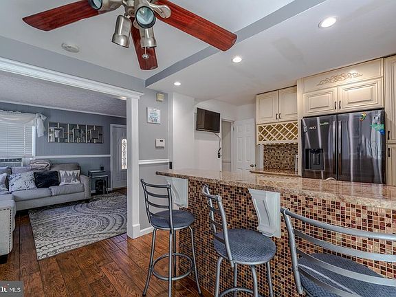 Check out an amazing renovation in the historic district of Dundalk! This semi-detached home offers 3 bedrooms and 2 full baths, a fenced yard, large new deck and convenience of a private parking pad. The front façade has been upgraded in a lovely light grey stone. Welcome guests into the open living & dining area which leads to the kitchen with new granite countertops, mosaic tile backsplash and accents, breakfast bar and stainless appliances. The basement features a third bedroom with a closet organization system, and bath with modern fixtures as well as a laundry area. Two large bedrooms and a full bath with shower upstairs make this a great starter home. Quality features and modern design choices at a great value!