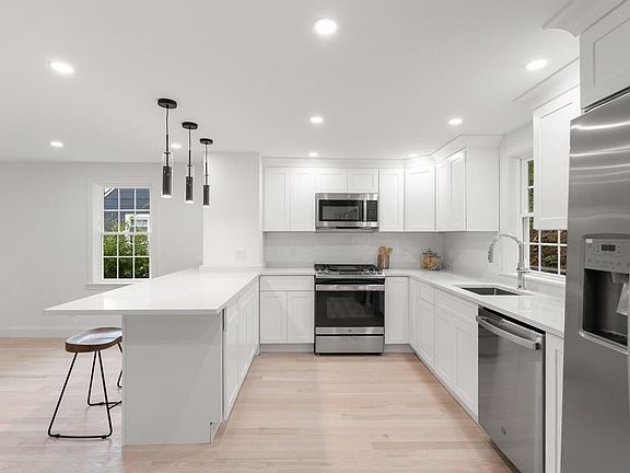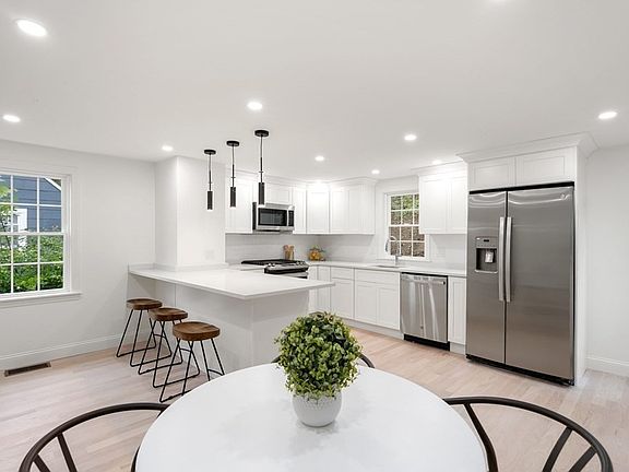 Beautifully updated Cape-style home located in desirable West Roxbury neighborhood! 3-bedroom Cape with a one-car garage in one of West Roxbury's most convenient neighborhoods. Enjoy cooking in your bright kitchen with new cabinets, quartz countertops, peninsula seating, and stainless steel appliances open to your dining room and outdoor patio make for great entertaining. Additionally, on the first floor, you'll find a lovely living room, a full brand new bathroom, and two bedrooms. The second level features a sun-splashed working area and a stunning primary suite with a skylight, a stunning bathroom with double vanities and a walk-in shower, and a huge walk-in closet. All major systems are new or updated including heat, A/C, plumbing, and electrical. Nothing to do but move in. Excellent West Roxbury location with its vibrant community and many shops great dining, tons of outdoor space, and, of course, the commuter rail.
