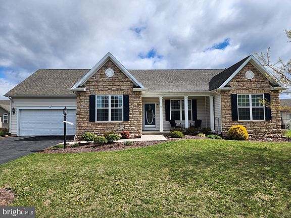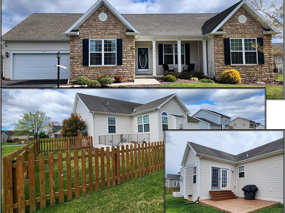 Here is an amazing Rancher with 1890 square feet built by CBS builders this Talia II floor plan has it all. Hardwood flooring in great room, dining, kitchen and sunroom. Large sunroom with gas fireplace, door leading to patio and fenced rear yard. Kitchen with granite countertops and all appliances convey. Split bedroom plan. Primary bedroom with trail ceiling, new carpet and updated primary bathroom with ceramic tile floor, tiled walk in shower, walk in closet. New carpet in the bedrooms 2 and 3 which are really nice size. Laundry room. Covered front porch, attached 2 car garage. Newer heat pump and hot water heater. Full unfinished basement with rough for future bath, lots of shelving, walk up stairs to backyard. Community offers playground, pavilion ,and basketball court.