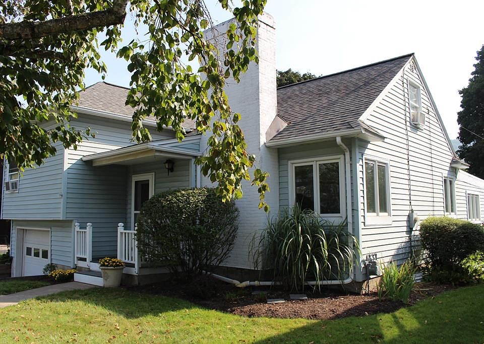 What a charming and spacious home on a very pretty landscaped lot with a newer patio and stone wall. It's located within walking distance of downtown , the YMCA, CMOG and Guthrie medical, even Wegmans. 3 bedrooms, 1/5 baths, huge family room and very cozy living room with gas log fireplace. Very light kitchen with Corian counters and fully applianced; even the washer and dryer stay. First floor laundry and half bath combination. One car garage with a heated workroom or craft room off the back ( it could even be an office) Immaculate with freshly cleaned carpets. See agent for VAProgram.