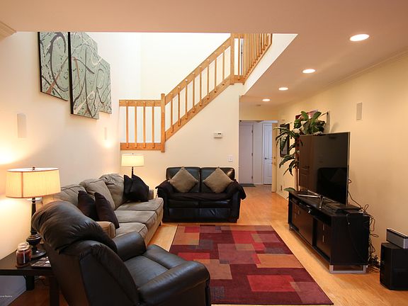 Truly immaculate! Bright, light & airy best describes this meticulously maintained townhouse at Spring Meadows! Open floor plan features foyer, living room w/soaring ceilings, gleaming oak hardwood floors, recessed ltg, crown moldings & wood burning fireplace (custom home theater included!). Formal dining room w/crown moldings, wood flr & sliders to enclosed Trex deck w/storage shed. Sun drenched eat in kitchen w/tile floor & back splash, abundant cabinetry, s.s. appliances and breakfast nook w/wainscoting. 2 generous sized bedrooms, 2 1/2 updated baths, laundry rm & attached 1 car garage! Master Suite boasts lots of closets, sliders leading out to private balcony & renovated bath w/oversized shower! 2 car brick paver driveway, ample visitor parking & convenient location to everything!