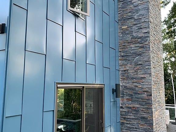 New Price!!! Beautifully renovated Contemporary/Mid-Century hillside home offering lovely treetop views in Crow Point. The home has new, contemporary siding, 4 new skylights, new furnace and central air, new stone work and privacy fencing. New glass sliders afford breathtaking views and access to multi-deck options front and rear. The flexible floorplan is flooded with natural light yet very private. The master suite offers beautiful views, outside space, full bath, custom closet/dressing room, new stone fireplace, and office nook with custom shelving. The spacious living room has newly finished floors, walls of windows leading to a wrap around deck and lovely stone fireplace. The kitchen/dining/family room offers a wall of custom cabinetry, breakfast bar, and separate laundry room. Two more bedrooms have lovely views and are serviced by a full bath and the lowest level is a guest suite with full bath, granite kitchen, and separate entrance with patio. Come See!!