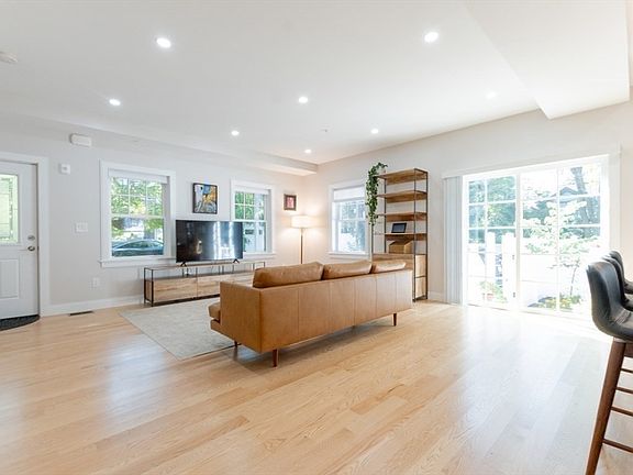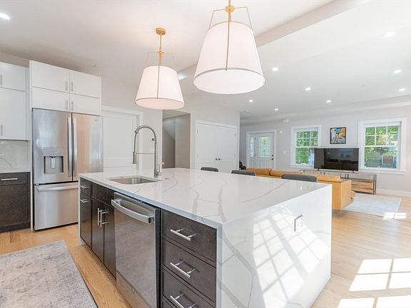 2023 construction townhouse in Newton with 3 bedrooms, 3.5 bathrooms on three finished levels... Main level features spacious open concept kitchen / living room with oversized kitchen island and beautiful quatz countertops... Access to a large private patio is right from the living space… The second level features the primary bedroom with en-suite bath and walk-in closet plus another spacious bedroom with en-suite bath … laundry in a hallway. Lower level features cozy Family Room, third bedroom with en-suite bath, and storage space... Two parking spaces… Very convenient location for public transportation, Mass Pike, shopping, restaurants, schools and parks…