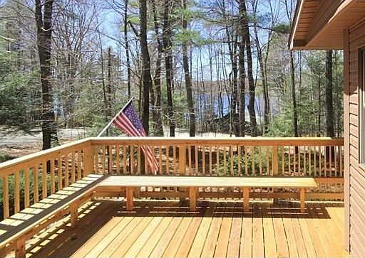 Enjoy the Lake views from your deck in this awesome LAKE HOUSE! A perfect year round " retreat" located in a well maintained private community. The unique energy efficient open floor plan includes a 3 season porch and sun-deck with seasonal water views! Low-maintenance landscaping with stone walls and paving stone walkways! MUST SEE this charming three bedroom home at the end of a "no exit" paved street! Unwind and recharge here in this serene setting near beautiful "Cranberry Pond"!!