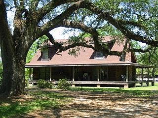 RUSTIC HOUSE WITH HUGE OAK TREES AND WRAP AROUND PORCH. MASTER COULD BE BEDROOM #1 OR #2 - BOTH HAVE PRIVATE BATHS. OWNER HAS NEVER LIVED IN HOME GREAT PANTRY SPACE IN KIT.VERY LGE BATH UPSTAIRS BARN & 2 STORAGE BUILDINGS ON PROPERTY. VAULTED