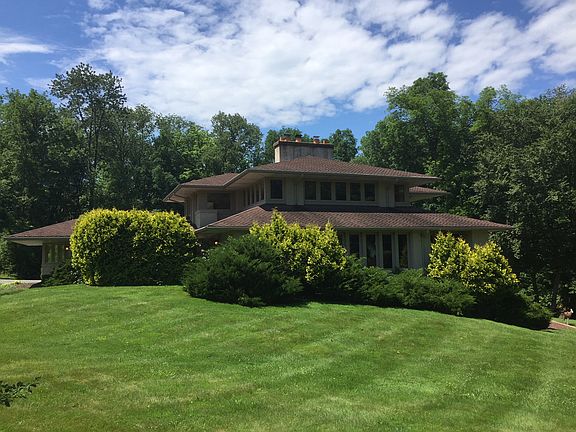 Extraordinary, unique, special: these are just a few words used to describe such a magnificent home. You want it all and now you can have it. A private 20 acre country estate and just a short walk to Lambertville and New Hope. "Fair Chase" is one of Lambertville's premier properties. Listen to swan creek rolling along the rear of the home while the New Hope steam train's whistle blows in the distance. Walk through the tall oaks across your stone bridge over swan creek and up to the secluded young apple and pear orchard. Or just relax and watch your horses in the front pasture. The home itself was custom designed utilizing the sought after "Prairie" or "Mission" style and Frank Lloyd Wright artistry. Walls of windows let nature and natural light in at every turn while large Mission overhangs keep the direct sun out. Over two years to complete, builders are astounded at the quality with which this home was constructed; having a hidden steel i-beam super structure along with timber frame and 160 windows..."It just can't be duplicated". The main level offers over 5, 000 Sq Ft with a large foyer, piano room, dining room, kitchen, all being large gathering rooms. To the south is the bedroom wing having four light filled rooms each with an entrance to their bath rooms. A 1, 000 Sq Ft living room with a massive stone fireplace anchors the house and finishes this floor. The upper level holds the 1700 Sq Ft master suite complete with marble fireplace, wall of stained glass, office room and the master bath complete with open marble shower for two. The lower level has over 2, 000 Sq Ft of full walk out to swan creek complete with gym room, timber frame game room with 15 yard indoor archery range and yet another stone fireplace. There is a heated four car attached garage and ample parking complete with circle drive to the front door. This could be a fantastic opportunity for an in-home business, doctor's office, Group Home, etc! Make time to visit Lambertville's "Fair Chase".