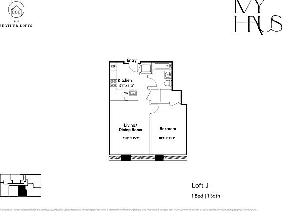 High Floor one bedroom with tons of natural light! Large one bedroom loft in the building with tons of natural light, large windows, high ceilings, and exposed brick walls! This S/E facing loft features polished concrete floors throughout, custom kitchen with stainless steel appliances and central AC. The bathrooms offer Cementi and Subway tile walls, classic penny tile floors along with soaking tubs and vanities adorned with bronze and chrome fixtures. The amenities are no additional charge and include a fitness center, common roof top terrace, bike room, and a package area. The Feather Lofts is an intimate collection of loft style homes ranging from sun filled studios to voluminous Penthouse apartments with private roof terraces. Each and every space is teeming with natural light emphasized by oversized windows and ten to fifteen foot ceiling heights throughout. Blue and grey undertones emanate from the solid oak cabinetry, and one of a kind natural stone washes over the worktops. At foot, solid slab concrete that during the turn of the century housed massive industrial machinery, now polished to perfection encapsulating forever the remnants of a once bustling factory floor. The washrooms are thoughtfully designed in keeping with the warehouse aesthetic.