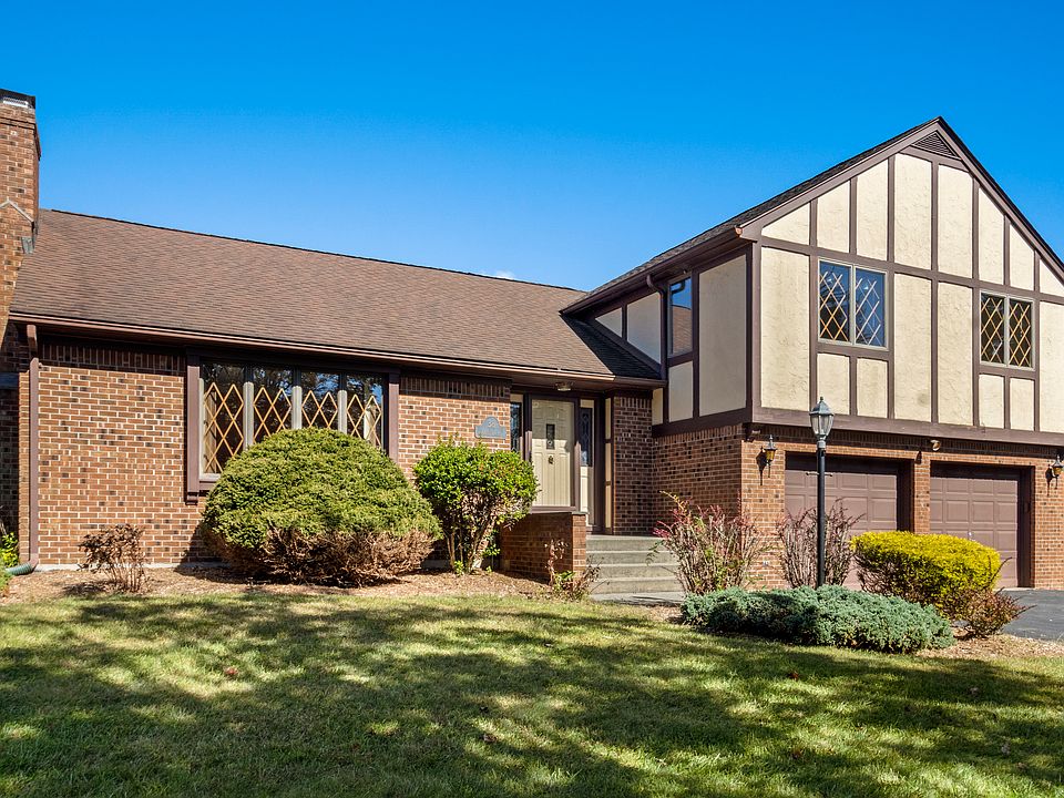 Well kept 3-Bedroom Tudor-Style split level with heated 2 car garage. Built with care, but needs some updating & ready for your personal touches! Step into this one-owner home located in a peaceful, highly sought-after cul-de-sac neighborhood. Built with precision and pride by the owner with solid construction that stands the test of time. The spacious living room has an abundance of natural light that flows in through the many windows, and a fireplace that adds a touch of cozy ambiance. The eat-in kitchen is enhanced by its many cabinets, providing ample storage space and functionality. The lower level Family room with slider opens to the large, well-maintained backyard, perfect for outdoor activities, gardening. Convenience is key, with Mystic, shopping, restaurants, and highway access all just minutes away!