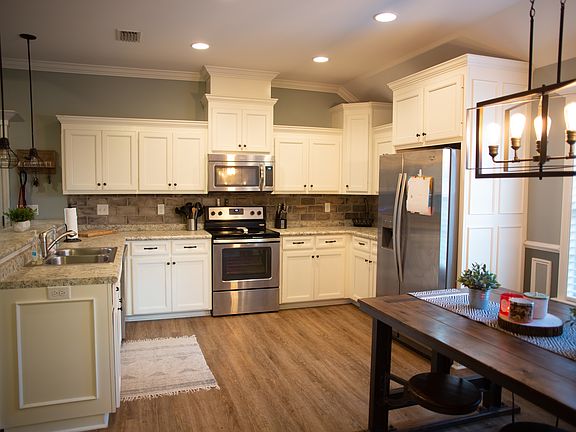 Well maintained home on 3/4 acre in desirable Patriot's Point Subdivision less than 12 minutes to Moody Air Force Base! Open concept kitchen & great room with LVP flooring in all main areas. Split floor plan with carpet in bedrooms & tile in bathrooms & laundry. Gorgeous coffered ceilings in the great room, judges paneling in foyer & breakfast area, & custom light fixtures and farmhouse paint colors throughout. Master features trey ceilings & leads into huge master bath with double vanity, soaking tub, walk in closet, & large walk in shower with rainfall shower head. Kitchen boasts custom cabinets, stainless steel appliances, & peninsula island with tons of bar seating. Large lot at the end of a quiet cul-de-sac with privacy fence, fire pit, & 11x7 storage shed that's perfect for tools & toys. Take a walk through your own backyard to the private community pool!