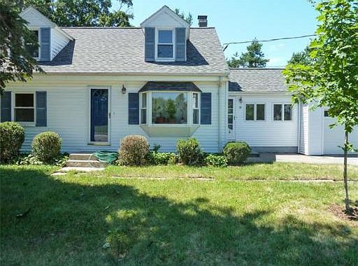 Its a classic cape with desirable updates of vinyl siding, new roof in 08, new Pella slider and vinyl windows, one car garage , brick front patio. Sunny deck opens to a level back yard ringed with trees and vegetation. Title v passed for 3 bedroom home. . Kitchen has stainless fridge , dishwasher and white country cabinets. Large master on main level .4th room with closet can be used for den or dining. Two upper bedrooms have built in drawers. Full basement with B-dry basement system with warranty . Workbench included as well as washer dryer. All in move in condition. Convenient commuter location and near to new mall complex under construction.