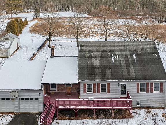 Enjoy privacy and opportunity with this 4-bedroom, 2 full bathroom home, featuring two bedrooms & laundry conveniently located on the first floor, with two additional bedrooms on the second floor. A large front deck welcomes you and offers inviting outdoor living space. Set on 5.26 acres of versatile land, the property includes a large 2-car garage and expansive tillable acreage, ideal for farming, recreation, ADU or potential solar use. A slider off the kitchen opens to a large patio overlooking the yard, perfect for outdoor entertaining. The walk-out basement features 2 bonus rooms providing flexible space for an office, hobby room, or guest area. New pellet stove offer efficient supplemental heat. Several fruit trees add charm and function. Tucked away in a quiet, off-road location, this property offers peaceful seclusion with endless possibilities, while close to UMASS & easy access to the RT. 9 shopping. EV charger in garage, fenced in backyard & 2 oil tanks. Come take a look!