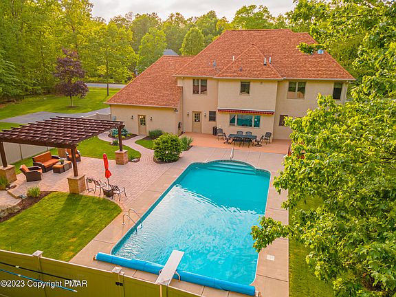 PROPERTY UNDER CONTRACT ONLY ACCEPTING BACK UP OFFERS AT THIS TIME. Distinguished Custom Built Chateau Style Home with Incredible Backyard Oasis in desirable Saddle Creek Estates. This Immaculate home is located minutes from Route 80 and Delaware Water Gap on a flat lot surrounded by greenbelt. A Large fenced in backyard offers privacy and seclusion with a heated in-ground pool, hot tub, pergola and fire pit surrounded by lush mature landscaping. A spacious open floor plan and fully finished basement are perfect for entertaining. Features include large shed for storage, central vacuum, automatic generator and much MORE. This home is extremely well cared for and in perfect move in condition. LOW TAXES and NO ASSOCAITION FEES, just 90 miles from NYC and Philadelphia.