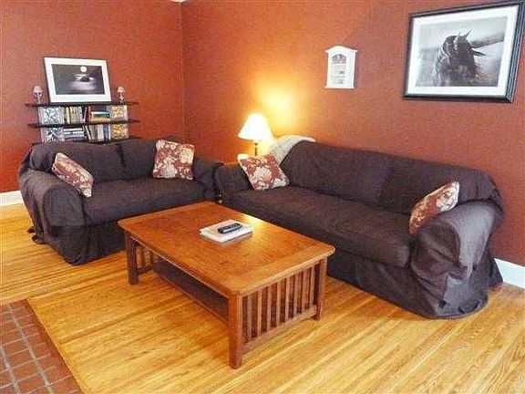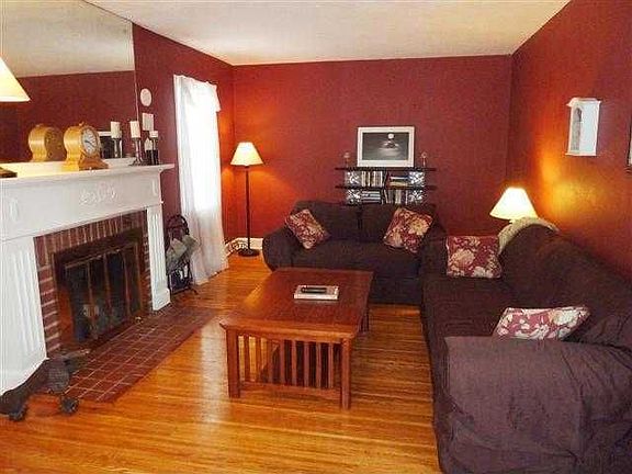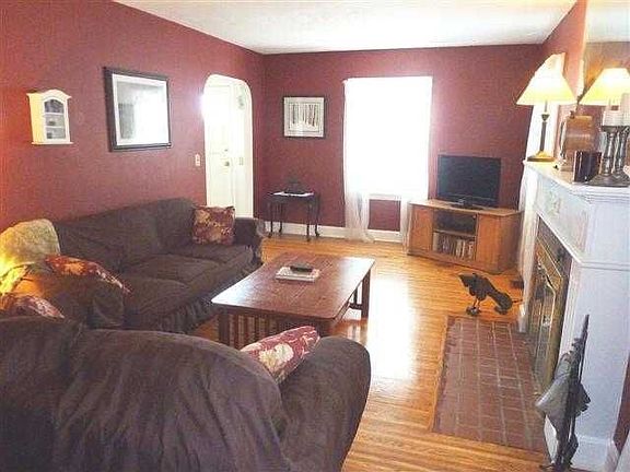 Charming colonial within walking distance to stores.Living room with hardwood floors and woodburning fireplace. Formal dining room includes two built-in cabinets and updated lighting with door leading to sun room. Large master with walk in closet and nice second bed room with hardwood floors. Den/office on first floor could be 3rd bed room. Nice fenced in yard with patio and covered awning with hot tub.