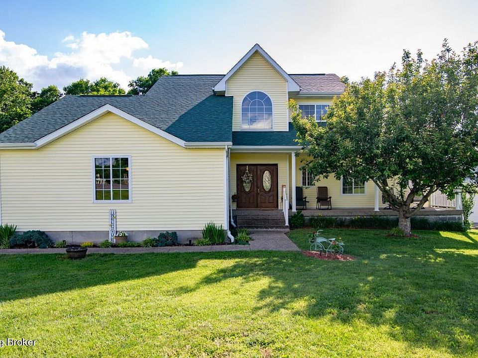 STANDING TALL & BEAUTIFUL is this 2 story, Spacious Home, Nestled on over 3 acres with Serene Views! This home boasts many upgrades, including NEW ROOF & GUTTERS (2022), NEW AC 2021 (upstairs), UPDATED MASTER BATH with walk-in shower/double shower heads/jets/and cleaning wand & separate jetted tub, several NEW WINDOWS, Hardwood Floors, Tile Floors, & NEW GRANITE KITCHEN SINK AND FAUCET, & SOME NEWLY PAINTED ROOMS... to name a few. Master Suite on the main, Eat-in kitchen/breakfast nook, a GOREGOUS 2 STORY HIGH TURRET for your viewing and living pleasure. Laundry room on the main. Upper level includes a WONDERFUL LOFT PERFECT for a 2nd living room/family rm or play rm, 3 bedrooms, 1 with built-in seating/nook, and full hall bath. The walk-out basement offers 1200 +/- sq ft of unfinished space that includes pool table. Go outdoors and enjoy your 3+ acres, plant your garden, sip your favorite beverage on the covered porch OR if you like playing in the garage, WELL this is it! In addition to the attached 2 car garage is a 50 x 30 detached garage with electric & 12000 lb. post car lift. DON'T WAIT! CALL TODAY