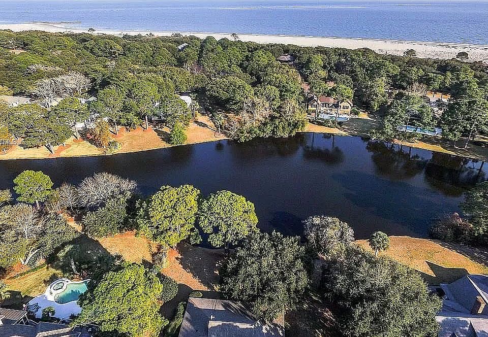 Open floor plan with lagoon view in Port Royal Plantation. Two offices. Base level includes garage space for four cars. Short walk to the ocean.