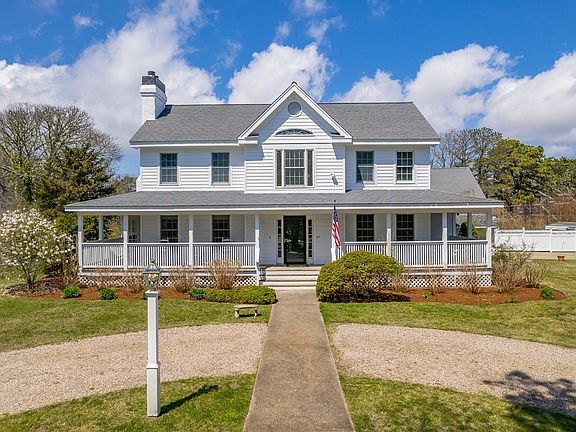 Grand and gracious Colonial within the sought after private enclave of Old Mill Point. Offering over 3200 sq.ft. of living space sited on a pretty corner lot a heated salt water pool. Only yards to the private association beach on glorious Nantucket Sound and dock on Herring River. The expansive covered porch welcomes you to the pretty foyer. Enjoy the more formal living room featuring custom woodwork, mantle and fireplace. French doors lead to to the impressive great room that covers the entire length of the house. Features include built-ins, bookcases, dining area, multiple conversation areas, custom windows and a glass slider access to the back deck. There is a more intimate dining room as well. Kitchen, bath, pantry and accessory rooms are located on the first floor. The second floor welcomes you to four good size bedrooms (2 witha peek of the sound) and 2 full baths. Ahh to live by the sea, bask on the sandy beach or poolside. Pick up guest on the dock and launch yourkayak.