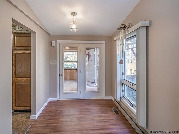 This Perfect Country Getaway on 27 plus acres is privately sited overlooking a gorgeous creek/stream and set back off of the road down a long driveway. Take endless walks, hike, camp or just relax and enjoy your own slice of heaven. This home has a flexible floor plan and gives you plenty of room for extended family and friends with a MBR suite, a kitchen open to a glassed diningroom, a large livingroom with a vaulted ceiling and stone fireplace and a glassed great room overlooking a creek/stream. There is even a pond on this property. The lower level is finished with 2 more rooms with glass sliders to the back. A great spot for guests and entertaining, you have a room with a wet bar and a beautiful bathroom with laundry access. The 2nd room is a great hang out spot and adding a pull out couch would give you space for overnight guests.
