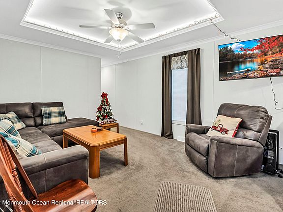 *PRICE IMPOROVEMENT!* This 2 bed 1 bath 2021 Skyline Mobile Home is completely move in ready! Home was recently updated in 2021. The bright ample kitchen has plenty of soft close cabinetry, SS range, dishwasher, refrigerator, microwave/hood, and double sink. Open concept living room with lighted tray ceiling combo/light fan, swivel wall mounted television and crown molding throughout. Lrg Primary Bdrm with sizeable closet, crown molding, TV, and ceiling fan. The spacious 2nd bdrm is currently being used as an office space. Washer and dryer included with laundry area cabinets. You will not lack storage space in this home. Outside has a wooden deck with stainless propane grill, an oversized shed, paver patios and walkways. Truly a must see!