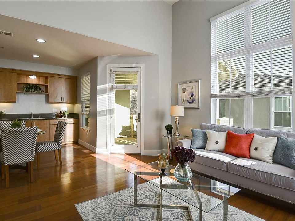 You will love this delightful, bright, south-east facing, meticulously maintained home, flooded with lots of natural light & stellar mountains views from the front patio. Substantial living room with vaulted ceiling boasts floor to ceiling windows. Just freshened up with new paint in and out. Two bedrooms. Spacious master bedroom has a large walk-in closet & full bath with separate tub and shower. Welcoming kitchen/dining area with laminated floors, stainless steel appliances & pantry. Newly carpeted stairs. Centralized heating & A/C. 2 separate car garage with generous storage area. Community with large greenbelts. Conveniently located close to BART, Whole foods, Fremont Hub, Lake Elizabeth Park, library & top of the line medical facilities.Highly desirable property!