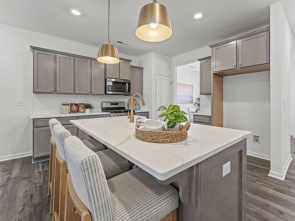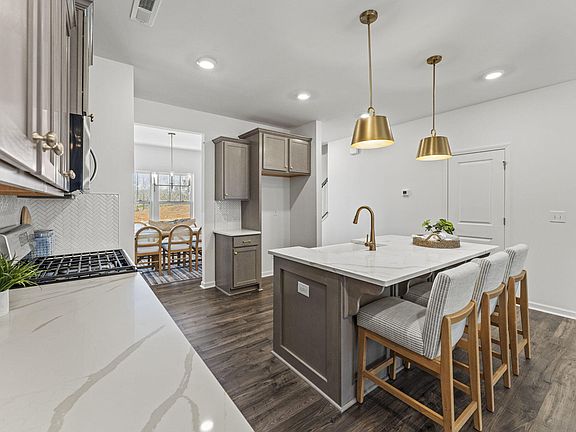 Quick Move-In Opportunity - Devin floorplan features primary suite on main, formal dining, open great room, well-appointed kitchen leading to rear screened porch and patio, and laundry room. Second level features 3 spacious secondary bedrooms, finished bonus room, and additional full bath with dual vanities. Upgrades to kitchen include quartz counters, tile backsplash, SS appliances including farm sink, and upgraded gas range.