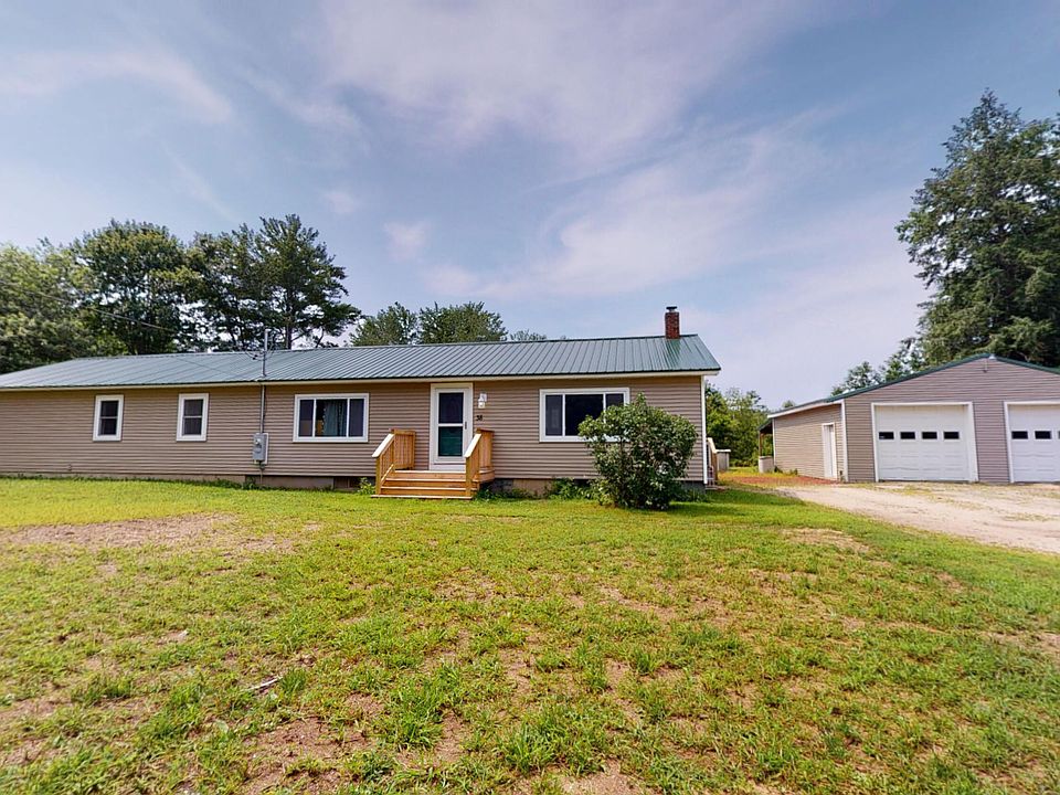This ranch should tick all the boxes! 1100 sq ft ranch with an 800 sq ft addition plus a new 30 by 30 oversized garage on 1.3 acres. Easy one level living with just a few finishing touches to do as well as one room that has to be finished that is not pictured in the photos. There are 3 bedrooms plus 2 additional spare rooms, open concept kitchen/living room with lots of room to entertain. The owners have done a great job with all the updates and have painted the inside a nice neutral color throughout, added vinyl plank flooring, new siding, decks, windows, new kitchen, bath, updated the electrical and installed a heat pump for heat/ac.