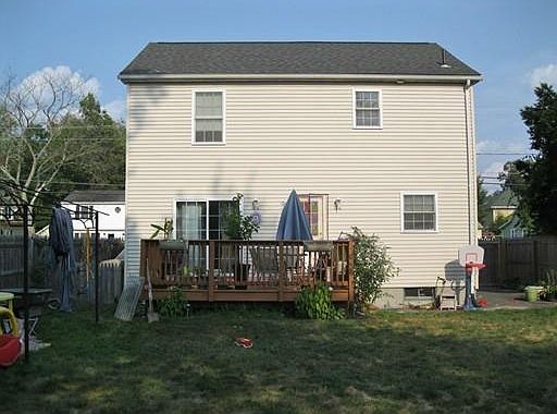 Meticulous well maintained Colonial. 3 BR, 1 1/2 Bath. Gas heat, Central Air, Vinyl sided. Updated kitchen with new quartz counter tops and porcelain back splash. New carpet in living room. Nice size Master Bedroom with two closets. Basement partially finished. Nice private back yard to enjoy cookouts on the back deck. Plenty of shopping and dining in the area. Walking distance to Five Mile Pond to enjoy the day at the beach. All appliances in the kitchen are staying for the buyers enjoyment. Move in ready!!