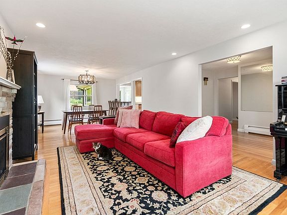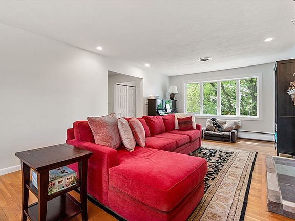 Expansive single family home on dead end street with views of downtown Boston from Slocum Rd. All 3 bedrooms are on the main floor including the Primary Suite with original en-suite ¾ bath & sliders to rear patio. Formal living and dining rooms are open to one another seamlessly leading to the kitchen. Bonus sunroom off kitchen is a great transition space to the L-shaped rear yard complete with perennial border gardens & fruit trees. Upper floor offers a finished playroom plus abundant storage in the unfinished attic. The finished, tiled lower level offers a generous mudroom w direct access to the 2-car garage, large bonus room with wood burning fireplace that works well as guest space, office or whatever your needs dictate! The lower level also offers a 3/4 bath, laundry room & separate utility room w cedar closet. Brand new central a/c system, 2-zone gas boiler (heat) w hot water storage installed in 2015, 200-amp electric, leased solar panels alleviate electric bills all year long.
