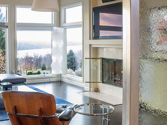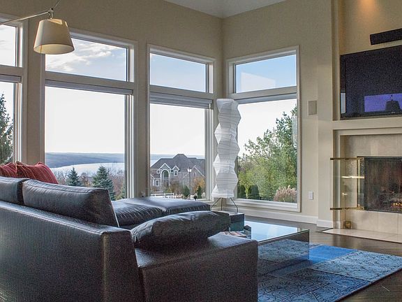 Panoramic Cayuga Lake views can be relished inside & out! Take in some Summer sun in the private saltwater infinity-edge pool w/built-in table & stools, hot tub or in the walkout LL entertainment rooms. Dramatic foyer. Living room w/ vaulted ceiling, glass waterfall, walls of windows & gas fireplace. Exquisite dining rm w/tray ceiling, Zebrawood cabinetry & illuminated dry bar. Office w/ lustrous Zebrawood cabinets & a view to get lost in. Master suite w/ vaulted ceiling, custom built-ins, gas fireplace, private en-suite, 2 walk-in closets & a balcony w/hot tub. Trexx deck. Many upgrades.
